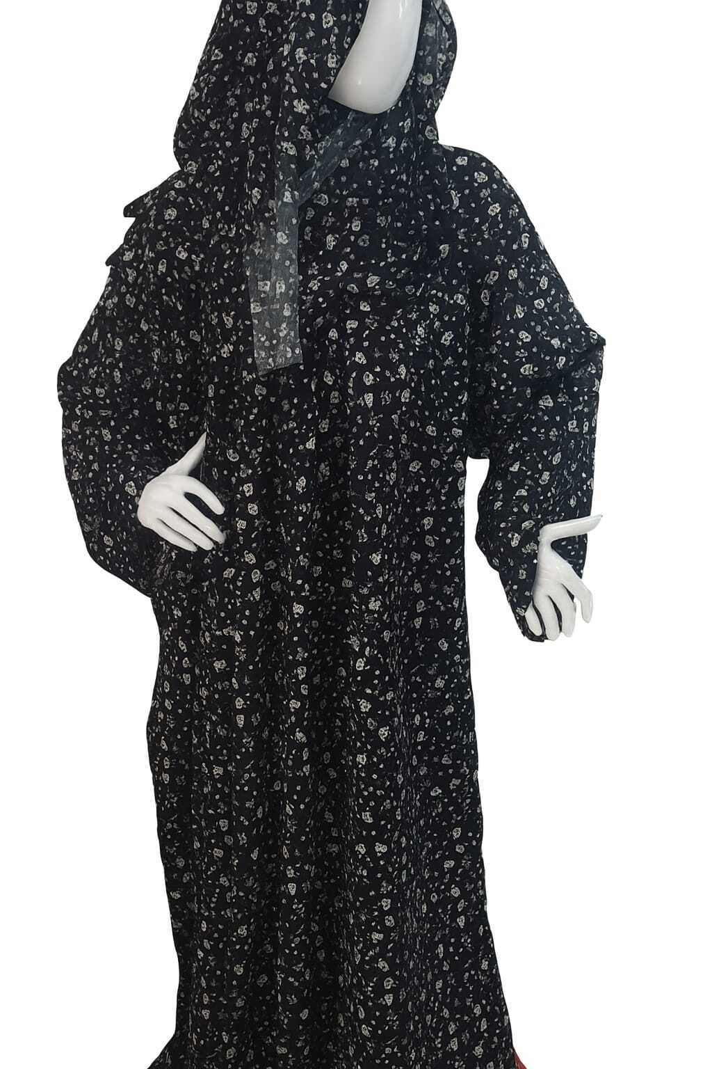 شرشف صلاه روزملون مفتوح من الامام مع طرحه تلف حول العنق قطني واسع فضفاض